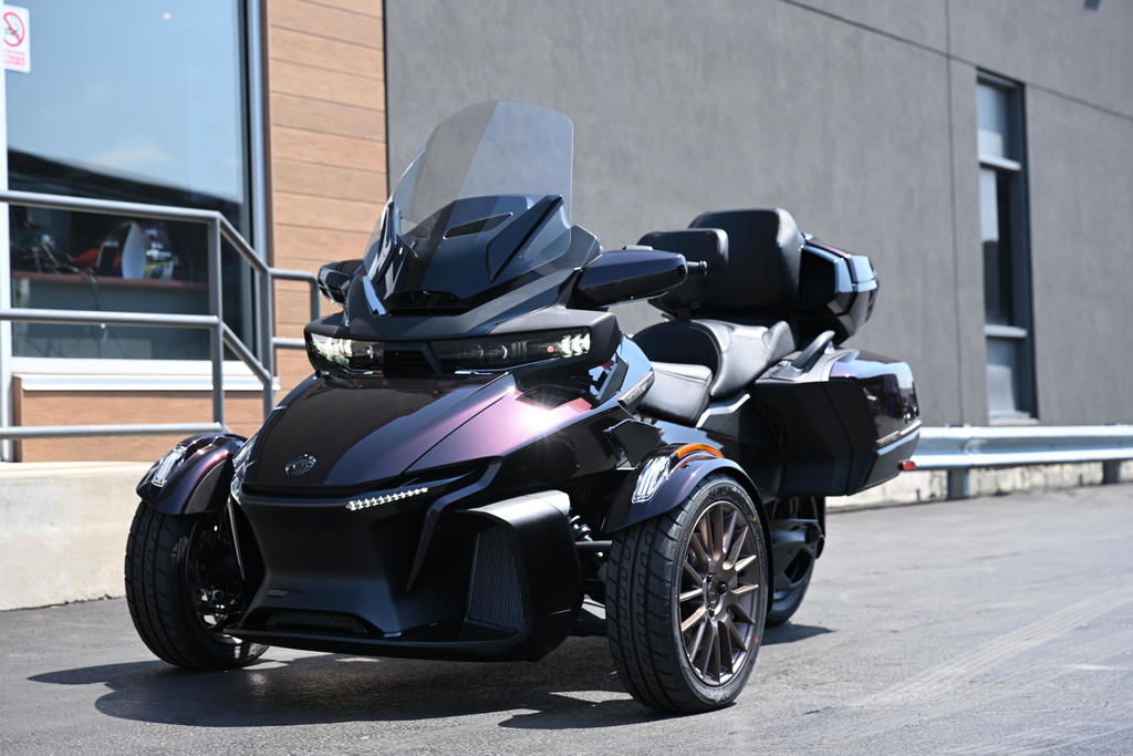 Adjustable passenger footboards | Handlebar control module | Glove box with USB | Cruise control | Integrated hard-side luggage | Adjustable electric windshield with memory | Driver and passenger heated grips | Driver and passenger heated seats | Fully panted LinQ compatible top case with passenger backrest | Colored rear panel | Adjustable side wind deflectors – lower & upper | Audio System: BRP Audio Premium 6-speaker sound system with radio, USB, Bluetooth